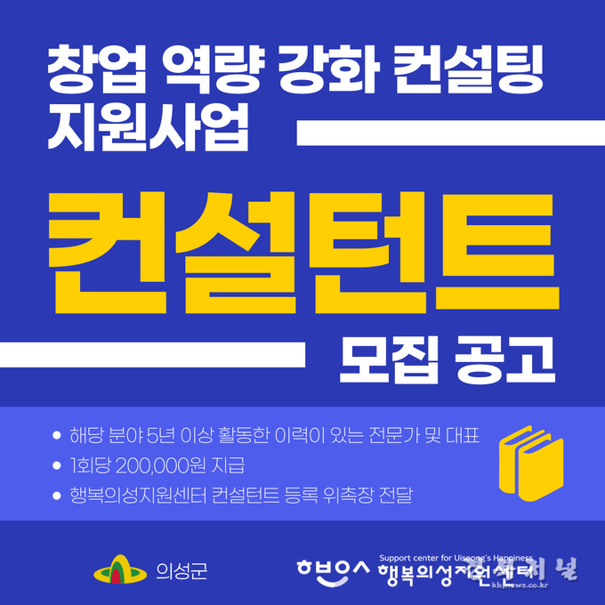 컨설턴트 신청방법 및 지원내용 등은 의성군 온라인 청년 플랫폼과 의성군 행복의성지원센터 홈페이지 공지사항을 통해 자세히 확인할 수 있다.