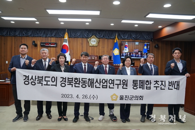 울진군의회는 지난 4월 경상북도가 울진군 및 울진군의회와 충분한 사전협의 절차도 없이 일방적으로 울진군 소재 경북환동해산업연구원과 안동시 소재 경북바이오산업연구원의 통폐합을 추진하는 것에 대하여 반대를 표명하고 이에 대하여 강력히 규탄한다.