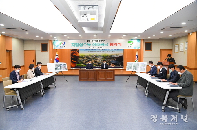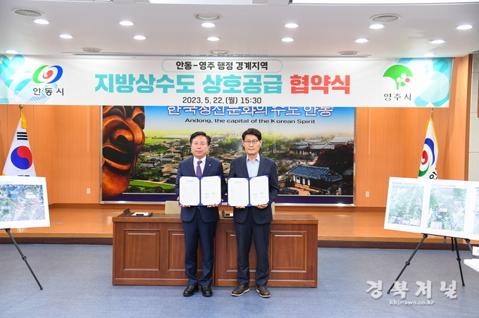 두 도시는 22일 안동시청 웅부관 청백실에서 박남서 영주시장과 권기창 안동시장이 참석한 가운데 지방상수도 공급 협약식을 체결했다.