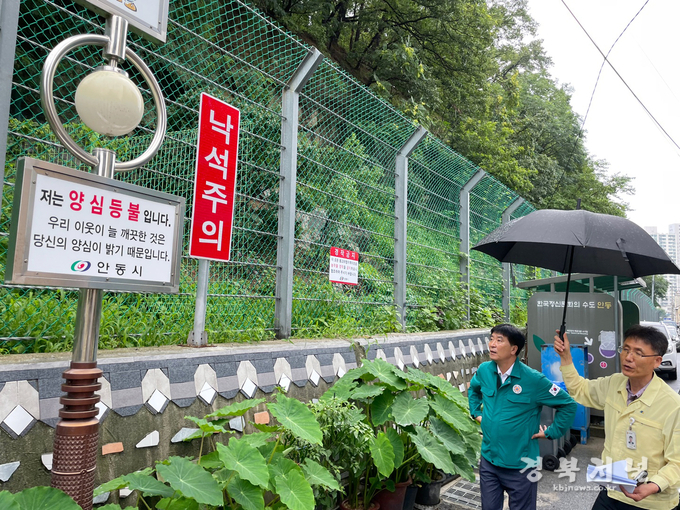 신동보 안동시 부시장이 경북북부내륙 지역에 100~250mm(많은 곳 300mm 이상)의 호우가 예보됨에 따라 13일 주요 취약지역을 긴급 사전 점검했다.