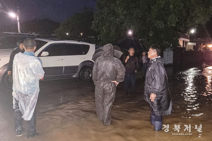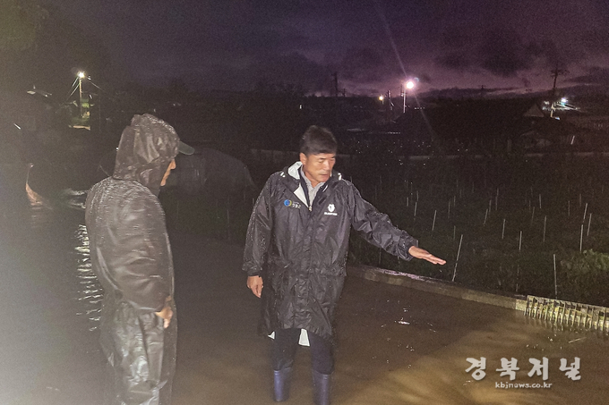 윤경희 군수는 지난 7월 18일 저녁 집중호우로 인해 발생할 수 있는 각종 재난사고와 피해를 예방하기 위해 긴급 점검에 나섰으며, 침수 우려지역, 산사태 취약지역, 비탈면 경사지 등 지역 곳곳의 위험지 현장을 직접 찾아 안전점검을 실시했다.