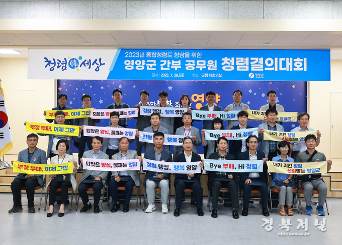 이날 진행된 청렴결의대회는 500여 명의 영양군 공무원을 대표해 간부 공무원들의 청렴의식을 고취시키고, 군민의 높아진 청렴의식 수준에 대한 보답하겠다는 적극적 의지를 대·내외에 표명하기 위해 마련됐다.