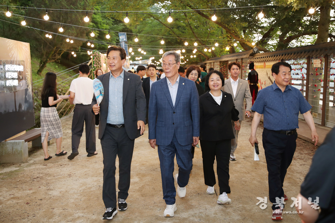 안동시의회(의장 권기익)는 29일 안동 월영교 일대에서 열린 ‘2023 안동 문화재야행(월영야행)’ 행사장을 방문하여 시민들과 관광객들을 위한 프로그램의 운영과 안전사고 예방 조치를 확인하고 편의시설 등을 관심 있게 살펴보았다.