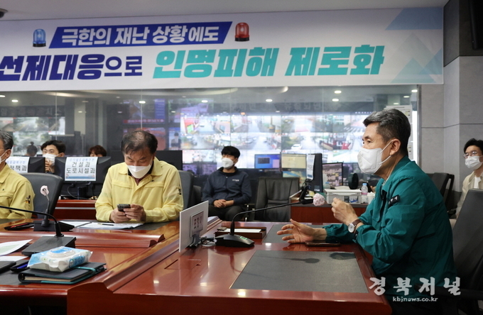 먼저 이 시장은 대송면 칠성천의 수위가 높아짐에 따라 현장을 찾아 진행 상황을 살펴본 후 22세대 34명의 주민이 대피 중인 대송면다목적복지회관을 방문해 현장 상황을 공유하고 주민들과 소통했다.