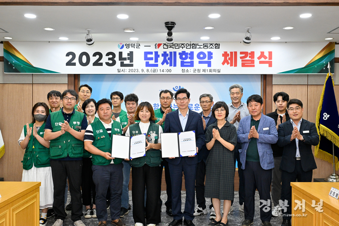 영덕군은 지난 8일 군청 제1회의실에서 전국민주연합노동조합과 ‘2023년 영덕군-전국민주연합노동조합 단체협약 체결식’을 개최했다.