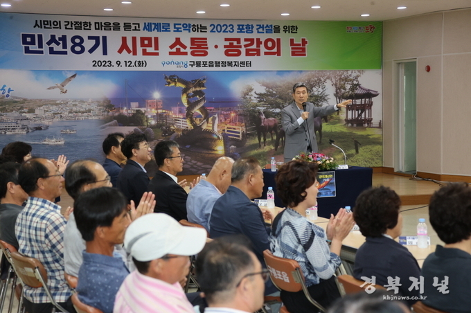 포항시는 12일 구룡포읍 행정복지센터에서 이강덕 포항시장과 시의원, 지역주민, 공무원 등 100여 명이 참석한 가운데, ‘세계로 도약하는 2023 포항 건설을 위한 민선 8기 시민소통·공감의 날’ 행사를 개최했다.