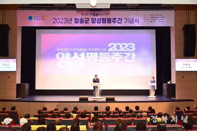청송군(군수 윤경희)은 양성평등주간을 맞아 지난 9월 14일 청송군 문화예술회관 대공연장에서 양성평등 기념식을 개최했다.