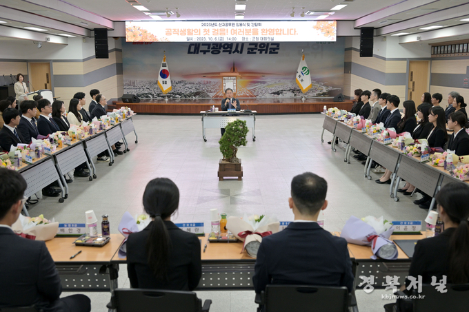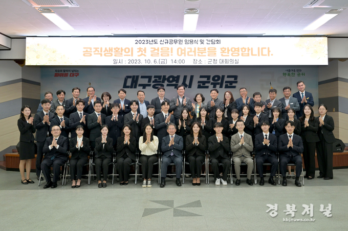 군위군(군수 김진열)은 6일 군청 대회의실에서 2023년 신규임용 공무원 29명과 가족 30여명을 초청해 2023년 신규공무원 임용 간담회를 개최했다.