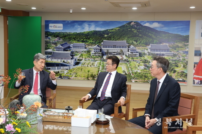 이강덕 포항시장은 지난 23일 열린 ‘2023년 경북도민의 날’ 행사 직후 이철우 경북도지사를 만나 포스텍 연구중심의대 설립과 블루밸리 국가산업단지 인프라 개선 등 지역의 주요 현안에 대한 협조를 요청했다.
