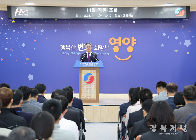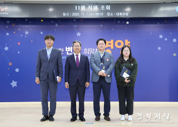 영양군(군수 오도창)은 11월 1일 직원조회 시 적극적인 민원응대로 민원인으로부터 칭찬받은 직원들을 격려하기 위해‘2023년 3분기 민원감동 칭찬직원’을 선정하여 시상했다고 밝혔다.