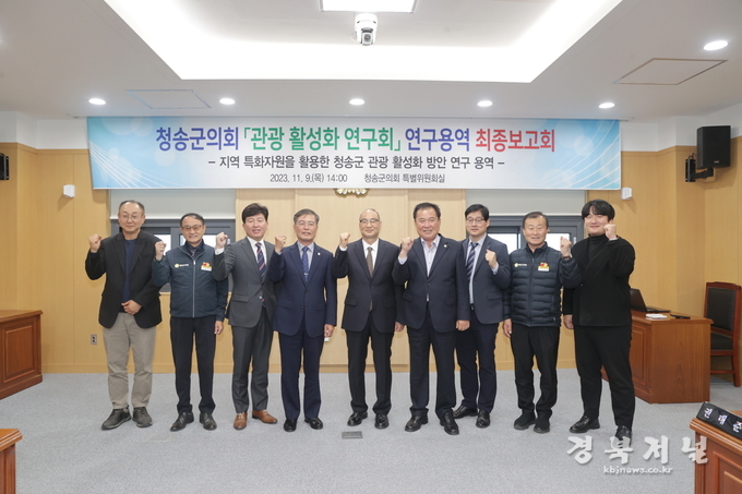 청송군의회 의원연구단체 ‘청송 관광 활성화 연구회’의 연구용역 최종보고회가 지난 11월 9일 군의회에서 개최됐다.