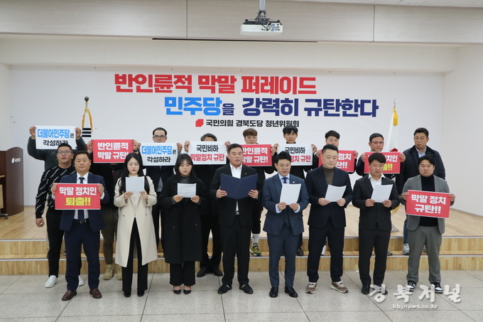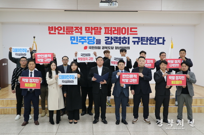 우리 국민의힘 경북도당 청년위원회 청년 일동은 반인륜적인 막말로 국민 비하와 국가 분란을 초래하는 더불어민주당에게 진실성 있는 사죄와 책임지는 자세를 다시 한번 강력히 촉구한다!