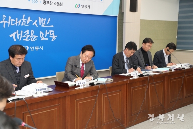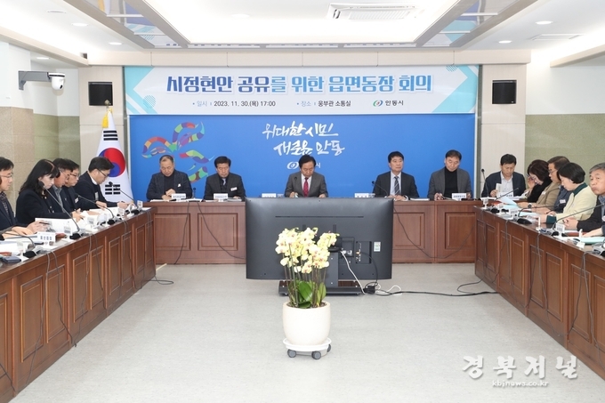 안동시(시장 권기창)는 30일 시청 소통실에서 국ㆍ소ㆍ본부ㆍ실ㆍ과장 및 읍면동장이 참석한 가운데 시정 현안 공유를 위한 읍면동장 회의를 개최했다.