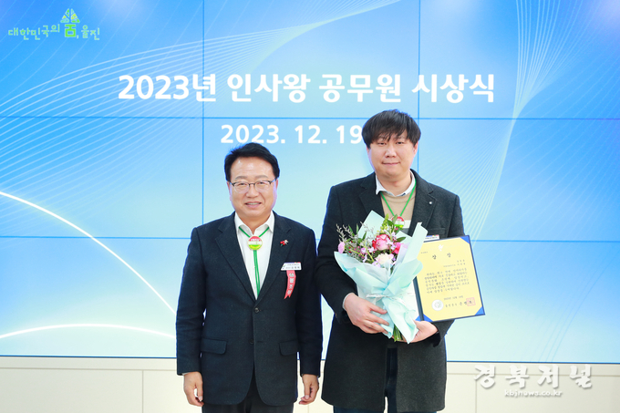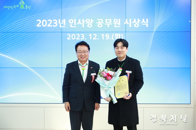 울진군(군수 손병복)은 지난 19일‘인사왕 공무원’으로 민원실에 근무하는 황병훈 주무관(행정9급)과 울진읍 이한솔 주무관(농업9급)을 각각 선발했다.