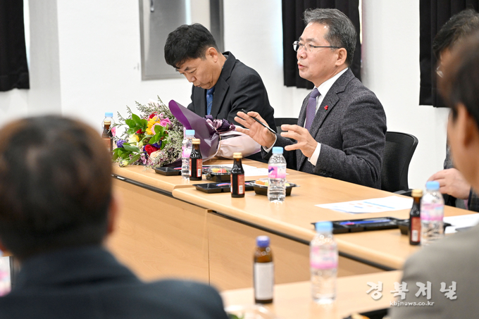 이번 간담회는 대구편입에 따른 후속조치로 상수도업무가 내년 1월 1일부터 대구시로 이관됨에 따라 맑은물사업소를 폐지하고 대구시 상수도사업본부 군위사업소로 개편됨에 따라 대구시로 전출되는 직원을 격려하기 위해 마련되었으며 금년 하반기 자율적인 전출 수요조사를 통해 오기윤 시설관리사업소장을 비롯한 22명의 직원을 전출자로 선정하였다.
