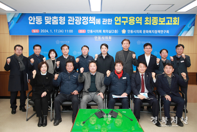 안동시의회 의원연구단체 문화복지정책연구회(회장 우창하)는 1월 17일 일 의회 청사 2층 회의실에서 우창하 연구회장 및 의원 등 20여 명이 참석한 가운데「안동 맞춤형 관광정책에 관한 연구」용역 최종보고회를 개최했다.