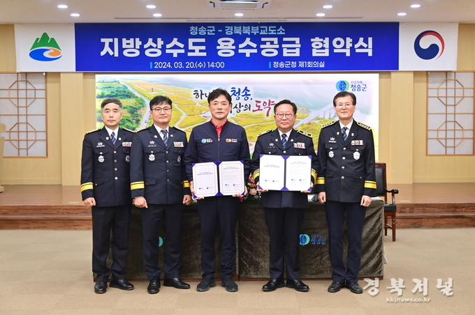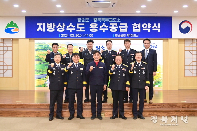 청송군(군수 윤경희)은 3월 20일 군청 제1회의실에서 윤경희 청송군수와 최진규 경북북부제1교도소장 외 3개소(직업훈련교도소, 제2교도소, 제3교도소) 소장이 참석한 가운데 「청송군-경북북부교도소간 지방상수도 용수공급 협약식」을 개최했다고 밝혔다.