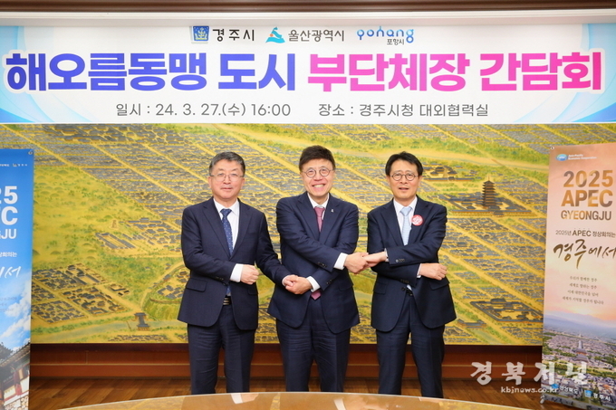 이날 간담회에는 장상길 포항시 부시장, 서정욱 울산 행정부시장, 김성학 경주 부시장을 비롯해 3개 도시 정책기획관들이 참석했다.