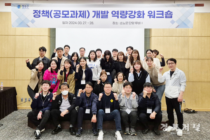 청송군(군수 윤경희)은 지난 3월 27일(수)부터 28일(목)까지 충북 단양군 소노문 단양 리조트에서 6급 이하 직원 30명을 대상으로 ‘정책(공모과제)개발 역량강화 워크숍’을 개최했다.