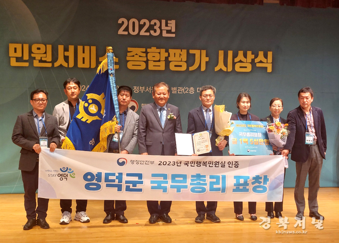 영덕군이 지난 4일 행정안전부가 주관한 ‘2023년 민원서비스 종합평가 시상식’에서 국민행복민원실 우수기관으로 선정돼 국무총리 표창을 받았다.