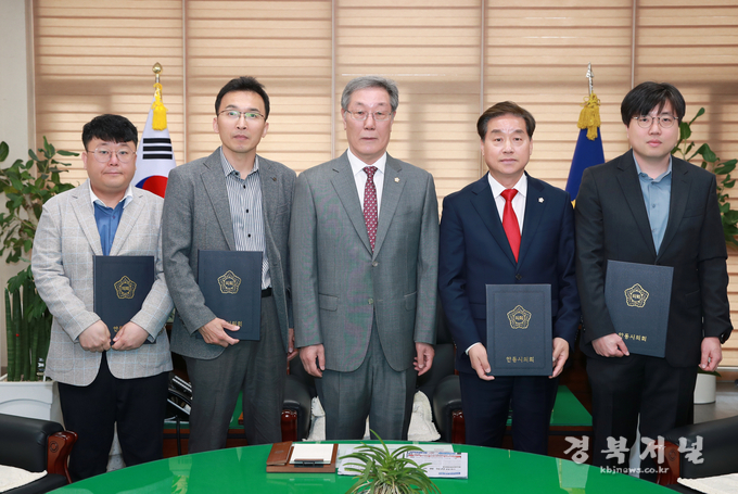 안동시의회(의장 권기익)는 4월 5일 오전 11시 30분 의장실에서 2023회계연도 결산검사위원 4명을 위촉하는 행사를 진행했다.