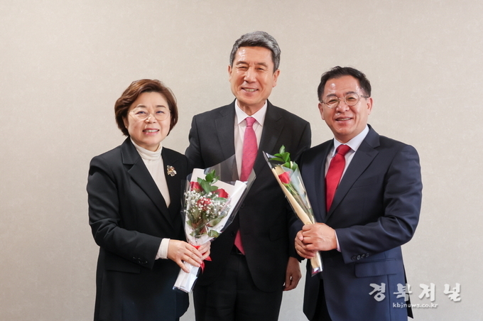 이강덕 포항시장이 11일 제22대 국회의원 선거 김정재(포항 북구)·이상휘(포항 남구·울릉) 당선인을 만나 당선을 축하하고, 지역 발전을 위해 함께 힘을 모아줄 것을 당부했다.