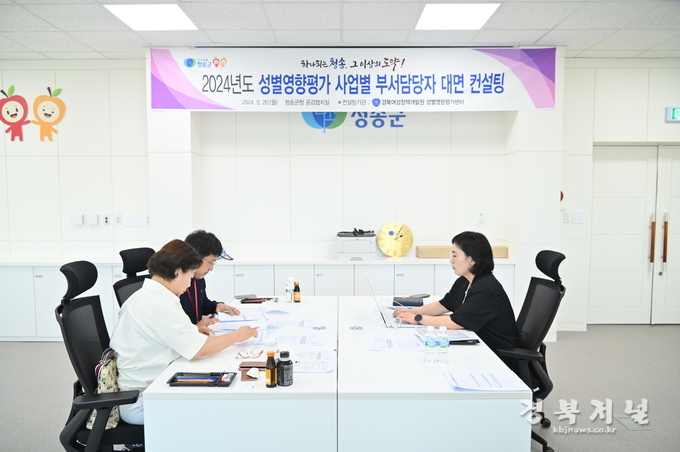 청송군(군수 윤경희)은 5월 20일(월) 성별영향평가 대상과제 사업의 원활한 추진을 위해 성별영향평가센터 전문컨설턴트를 초청해 6개부서 12명 사업담당자를 대상으로 1대1 대면컨설팅을 실시했다.