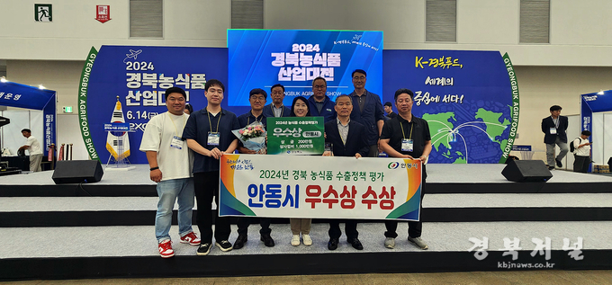 안동시는 경상북도에서 주최하는 「2024 경북농식품산업대전」에서 수출정책 평가와 관련 우수 시로 선정돼 시상금 2백만 원과 상사업비 1천만 원을 수상했다.