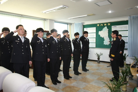 [울진]울진소방서(서장 김용태)는 지난 3일 신규임용 및 자체전보에 따른 신고식을 가졌다.