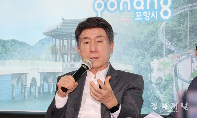 이강덕 포항시장은 21일 시청 브리핑룸에서 영국·아이슬란드 방문 성과를 설명하고 “이번 방문은 포항이 세계와 함께 성장하는 지속가능 도시로 나아가는 중요한 출발점이 됐다”고 밝혔다.