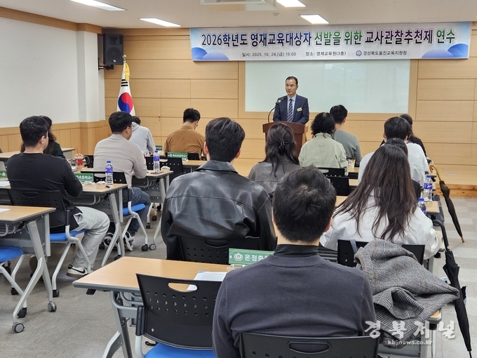울진교육지원청은 재능 있는 영재교육대상자를 효과적으로 발굴하기 위해 지난 10월 24일(금) 초·중학교 영재교육 업무 담당교사 및 희망 교사 20여 명을 대상으로 교사관찰추천제 연수를 실시했다.