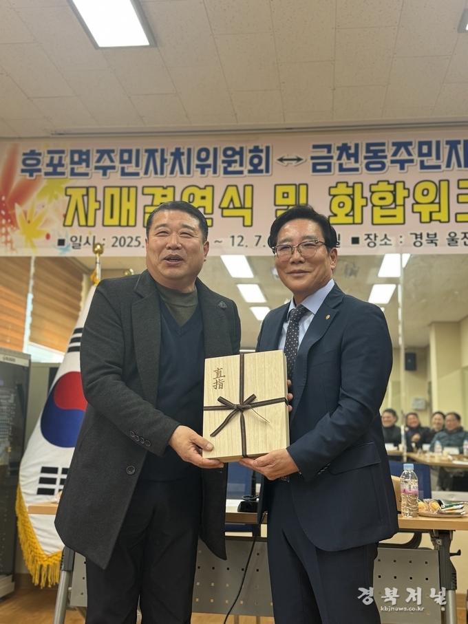 후포면 주민자치위원회(위원장 박영삼)와 금천동 주민자치위원회(위원장 정무신)는 지난 6일 후포 요트 학교에서 양 지역 발전과 상호교류 협력을 위한 자매결연협약을 체결했다.