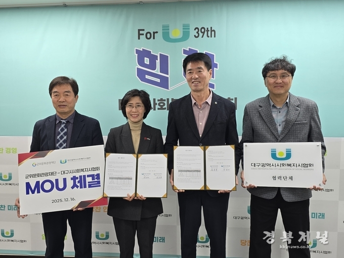 군위문화관광재단(대표이사 사공정한)과 대구광역시사회복지사협회(회장 박보리)는 2025년 12월 16일(화), 대구광역시사회복지사협회 회의실에서 지역 상생 및 공동 발전을 위한 업무협약(MOU)을 체결했다.