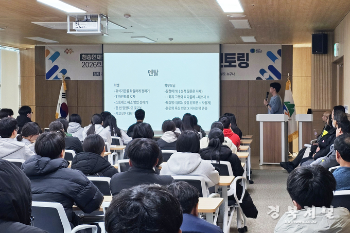 청송군(군수 윤경희)은 지난 20일 공공협력센터 다목적 대강당에서 청송인재양성원 재원생과 관내 학생 및 학부모를 대상으로 ‘2026학년도 대입 우수학생 멘토링’을 개최했다고 밝혔다.