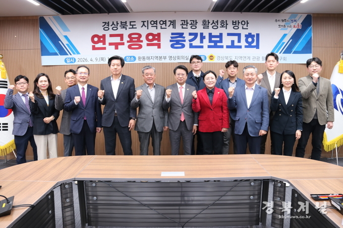 경북도의회 의원연구단체인 「경상북도 지역연계 관광 활성화 연구회」(대표 연규식 의원)는 지난 9일(목) 오전 11시 경북도청 동부청사에서 ‘경상북도 지역연계 관광 활성화 방안 연구용역’ 중간보고회를 개최했다.