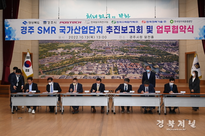 한국전력기술(사장 김성암)은 10월 13일, 경주시청에서 경상북도, 경주시, 포항공대, 한국수력원자력(주), 한국원자력연구원, 한국원자력환경공단과 ‘경주 SMR 국가산업단지 유치 협력 및 지역 상생발전’을 위한 상호 협력 협약을 체결했다.