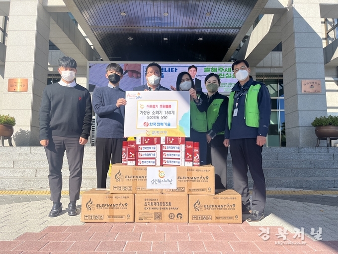 한국전력기술(사장 김성암)은 10월 25일 가을철 화재 예방을 목적으로 김천시 취약계층 150가구에 화재 초기 진압용 스프레이형 소화기(400만원 상당)를 전달했다.