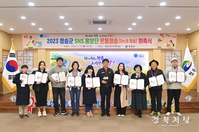 청송군(군수 윤경희)은 2월 27일 군청 제1회의실에서 ‘2023 청송군 SNS 홍보단 『온통청송』’(이하 홍보단) 위촉식을 가졌다.
