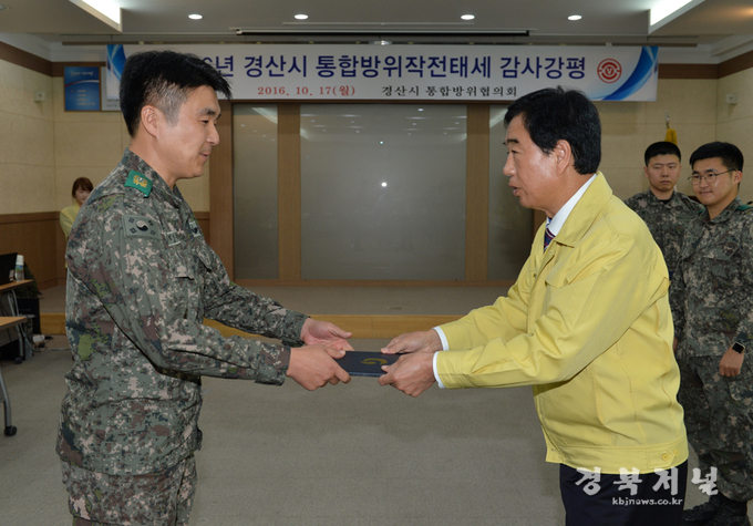 [경산]경산시(시장 최영조)는 17일 별관회의실에서 2016 경산시 통합방위작전태세 감사 강평을 실시했다.