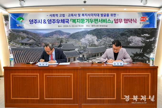 영주시와 영주우체국은 22일 영주시청 제1회의실에서 ‘복지등기우편서비스’사업 업무협약을 체결했다.