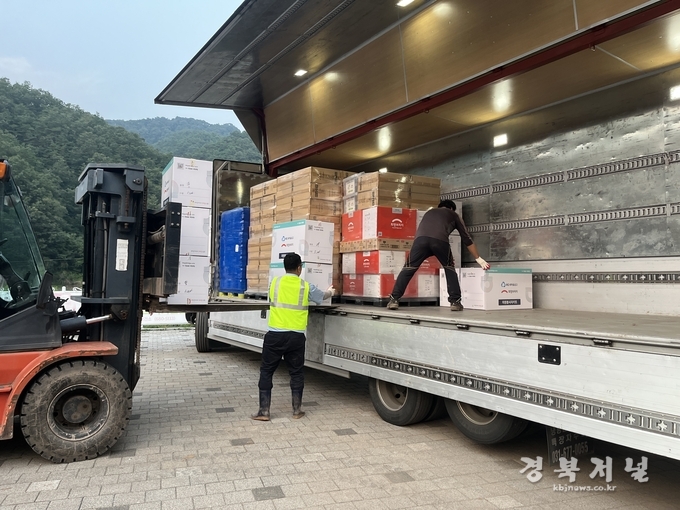지난 7월 8일 기록적인 폭우로 큰 피해를 입은 영양군에 복구 지원 인력이 끊이지 않는 가운데, 여러 단체에서 보낸 수재의연물품 후원도 줄을 잇고 있다.
