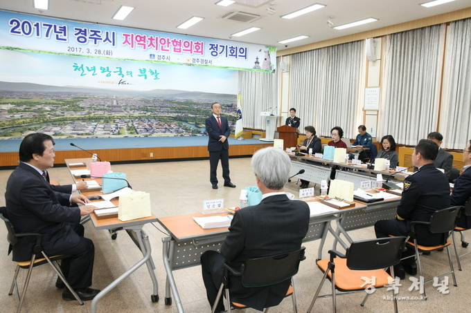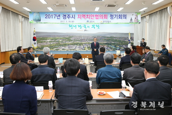 [경주]경주시는 28일 시청 대회의실에서 법질서 확립과 시민이 체감하는 치안력 향상위한 기관단체간 협업을 위한 ‘2017년 상반기 경주시지역치안협의회 정기회의’를 열었다.