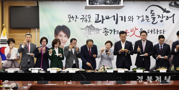 포항 대표 수산물이자 겨울철 별미인 구룡포 과메기의 출시를 알리고 포항 검은돌장어의 우수성을 홍보하는 행사가 21일 서울 여의도 국회의원회관에서 열렸다.