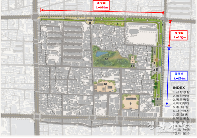 이에 경주시는 현재 추진되고 있는 신라왕경 복원사업과 더불어 고려와 조선시대 성곽도시 경주의 옛 모습을 갖추고 시가지의 역사문화 거점으로서의 기능을 회복하고자 경주 읍성 복원사업을 진행하고 있다.