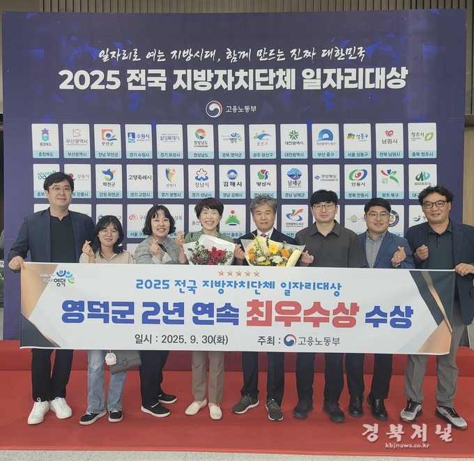영덕군은 지난달 30일 고용노동부가 주최한 ‘2025년 전국 지방자치단체 일자리 대상’에서 작년에 이어 2년 연속 ‘최우수상’을 거머쥐었다.