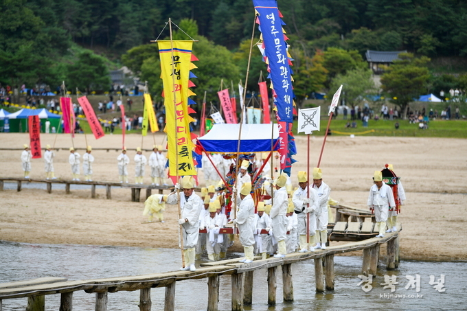 첫날 개막식에서는 외나무다리 퍼포먼스와 전통혼례가 무대에 올랐고, 경전성독 합동공연과 무섬 놀음 한마당 등 다양한 공연이 펼쳐져 축제의 서막을 화려하게 열었다.