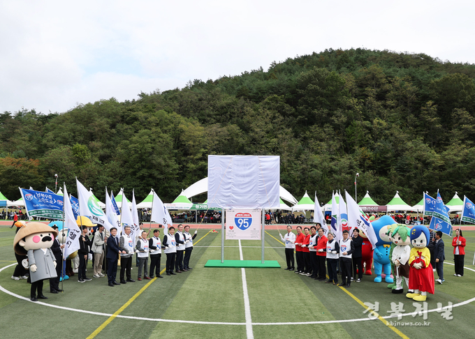 남북9축고속도로 추진협의회는 2025년 10월 15일(수) 영양 공설운동장에서 열린 제55회 영양군민 체육대회와 연계하여, 강원, 경북 10개 시. 군이 함께하는 ‘남북9축고속도로 조기건설 기원’ 연합 퍼포먼스를 개최했다.