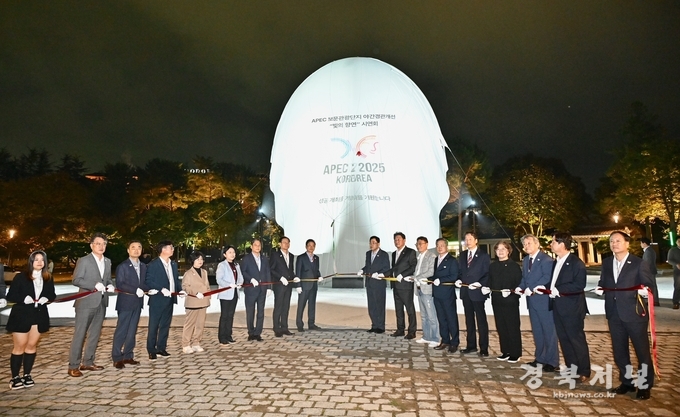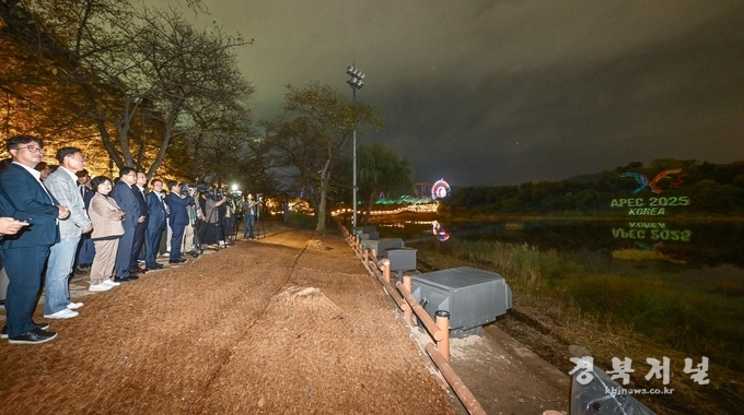 경상북도와 경주시는 15일 저녁, 보문관광단지 육부촌과 호반 광장 일원에서 이철우 도지사, 주낙영 경주시장 등 주요 내빈과 시민 100여 명이 참석한 가운데, APEC 보문단지 야간경관 개선사업 '빛의 향연' 시연회를 개최했다.
