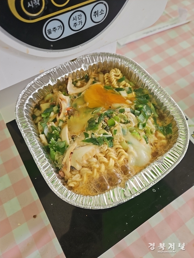 ‘내성천 송이라면’은 송이버섯과 파, 계란을 곁들인 밀키트형 메뉴로 하루 500그릇 한정 판매되며 연일 매진 행렬을 기록 중이다.