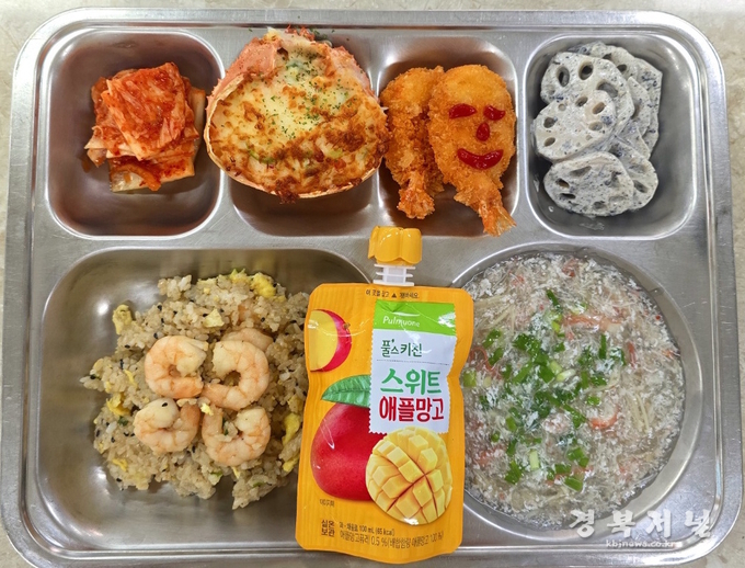 이날 급식에는 지역 대표 특산물인 붉은 대게를 활용한 풀코스 메뉴가 제공되었다.
